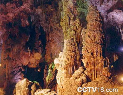 天星洞在城北的洞山脚上,距市区10公里,有三介相邻的溶洞,三洞连成品字形,最远相距10米,南洞最大,高6-10米,宽25-30米,长70-90米。洞顶前部有一穿透地面的小孔,光线射进洞内形成星光闪烁的奇妙效果,天星洞名由此而来。北有两洞,左洞较大,高2—6米,长100米左右,宽15-20米,洞内钟乳石林立,千姿百态,十分状观。右洞最小,高约5米,长约20米有洞天飞瀑的奇观。 |