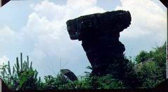 新晃侗族自治县凉伞乡西北角的凉山岭上,屹立着两座巨石,一座上面宽大下面窄小,像一个撑着雨伞的巨人,肃立峰顶;一座婀娜多姿像一位美女亭亭玉立于峰顶侧面的悬崖之上。人们叫它们为公岩、母岩。 传说很古以前,这凉山岭下有个寨子叫枫木塍。寨里有个勤劳、朴实、憨厚的青年叫曼郎。隔河也有个寨子,叫紫竹坪。寨里有个财主的女儿叫耶娘。曼郎家里穷,从小就在耶娘家看牛帮工。小时候,曼郎和耶娘非常要好,常在一起玩耍,曼郎每次从山上赶牛回来,都要摘些野花、野果给耶娘。耶娘虽然生长在富豪之家,可一点也没有小姐的娇气,常常闹着要同曼郎一起上山玩耍。有时,还把家里的米粑偷偷送给曼郎。真是青梅竹马,两小无猜。后来,二人渐渐长大,两人的心像牵了一根无形的丝线,它们常私约幽会,倾诉衷肠,并发誓终身相伴,永不分离。后来,耶娘的父母知道了,他们把曼郎叫去,狠狠地骂了一顿之后,将曼郎赶出家门,并不准他再踏进这紫竹坪寨门半步。同时,又把耶娘关在绣楼里,叫丫环看守着。接着,又在卡玛媒婆的撮合下,给耶娘找了个婆家,那男人的年纪比她大三倍。嫁日就定在三月初三。耶娘死活不愿,哭得像泪人一样。而曼郎眼望紫竹坪,想着耶娘,相思成病,身体也一天天地消瘦下去。 三月初三,耶娘的嫁日到了。不管她如何反抗,终被强迫背上花轿,抬着就走。 接亲的队伍越过西溪,登上凉山。突然,耶娘从轿里钻了出来,一边喊着曼郎的名字,一边拼命向凉山顶奔去。接亲的人没命地追赶,没等耶娘被接亲人拉住,耶娘已像一片红叶从凉山顶上侧面的悬崖壁上飘了下去。这时,天空中闪出一道白光,顿时裂开了一条缝,雷声不断轰鸣,雨水不断地从裂缝中倾泄出来,大地也剧烈地抖动。那些迎亲的人,尽被抛下悬崖。眨眼间,枫木塍、紫竹坪,整个凉伞地区一片汪洋,变成了一座天湖。人们和曼郎绕着这茫茫的天湖,呼唤耶娘的名字,寻找耶娘。整整找了七天七夜,可始终找不到耶娘的踪影。 为了寻找耶娘,也为了帮助灾民恢复家园,曼郎决心在天湖北面挖一道缺口,把水放干。他挖了几天几夜,挖得精疲力竭,可山口一点也没有挖开。但他不灰心、不气馁,继续坚持挖。也许是他的精神感动神灵吧,一天,他正挖得起劲的时候,天湖北面一片通红,接着是一声巨响,北面山口裂开了,天湖水从裂缝中汹涌地往外奔流。 天湖水慢慢退下去了,曼郎又撑着伞四处寻找耶娘的踪迹。当湖水退到凉山岭的悬崖半壁时,只见耶娘纤细的身躯,静静地依偎在悬崖古松旁,脸上浮泛着甜甜的微笑,好像这里什么事情也没发生。曼郎见了,呼唤着耶娘的名字,朝悬崖奔去,奋身跳下悬崖,奔向耶娘……。 从此,这对情真意切的恋人,化为一对石像,巍然挺立在风景旖旎的凉山顶上,人们都叫他们为公岩、母岩。他们真挚的爱,感动着一代又一代的男女青年。为了纪念他们,每年到了农历三月初三,当地青年男女,都梳妆打扮,呼朋引伴,到这里来幽会,唱歌、黄斗带,尽情玩乐。年复一年,渐渐成了当地的习俗。 凉山顶上,至今耸立着这对形象奇特的公岩、母岩,成为独特的稀世奇观。古老的民间传说,吸引着各地游客慕名而来,都以一睹他们的姿容为快!