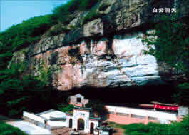 飞山山腰多岩洞。白云洞为一大洞、洞口位于东南绝壁之上。洞口原筑有精舍,已圯。但明靖州司马吴文宗所镌'白云洞天'四字仍耀眼于洞口绝壁之上。其先人所书"天开列嶂"四字只有隐约痕迹。白云洞往右不远处,为瀑布高挂的飞珠岩,又名"白牛洞"。洞虽不深,但洞壁光滑,山泉沿壁而下,在阳光照耀下,远远望去犹如一头白色水牛。往上130余阶便是宝珠岩。有一突出的圆珠岩石,直径约20公分,又名天鹅蛋,旁刻有文字数行,相传为神仙所书(实为用蝌蚪文书的禹碑),谁能一气念完,就会石裂宝出。飞山东北面有莲花洞,洞宽而深,旧时洞内楹舍精美。1962年省文化局曾拨款进行维修,后毁于"文化大革命"。 此外,飞山上还有天塘界终年不干的天塘,林龙坳千姿百态的奇石。每当夕阳西下,余辉中的飞山呈一雄浑剪影,在满天彩霞簇拥下显得分外壮观神奇,这就是"靖州十景"之一的"飞山夕照"。