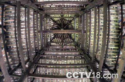 方形二层楼阁,九层八柱,木结构。边宽8米,高20米。顶盖为八角形,上托葫芦宝顶。封檐板与楼内大梁彩绘民间图画,各檐翘角饰禽兽浮雕。底层设火塘,四周置木凳。二楼正面系活动板壁,可兼做戏台。1至8层都是四角,第9层为八角。四方瓦檐上对称地塑有飞龙、麒麟、凤凰、孔雀、鳌鱼、雄狮、奔鹿等象征吉祥幸福的图形。横椽上也绘有各种鸟、鱼、花、草,线条分明,色彩绚丽。整个楼身结构精巧,造型美观,典雅端庄。这种纯木结构的建筑,“秉凉亭之清幽,兼宝塔之奇伟”,是侗族建筑艺术的杰作。 |