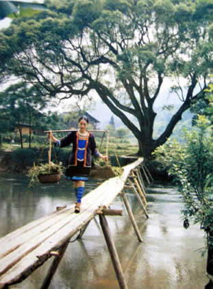 通道是侗族地区惟一没对外旅游开放的自治地区,民族文化资源更是原汁原昧。 三省坡,当地侗人称“粱蒙”,译成汉语是“云雾缭绕”之意,也就是“云雾山”,主峰海拔1336.7米,是越城岭、雪峰山和苗岭山脉过渡地段的最高峰。大山坐跨湘、黔、桂三省境,坡西面是贵州省黎平县平架乡,东面是湖南省通道侗族自治县独坡乡,南面是广西三江侗族自治县独洞乡,因而人们称它为“三省坡”。 三省坡距通道县城40公里,距黎平县城70公里,距三江县城40公里。三省坡的主峰在独坡乡境内,但它向四周伸延的山脉,延伸到贵州省从江县和广西龙胜县境(从江和龙胜也为侗族区域),距龙胜县城和从江县城分别也只有70公里。因此,准确的说,三省坡应是一坡连五县。这个区域的侗人交往频繁,通婚、结友、村寨互访。有意思的是,通道侗族与贵州和广西的侗族虽同源一脉,但从服饰到文化却有许多的不同。