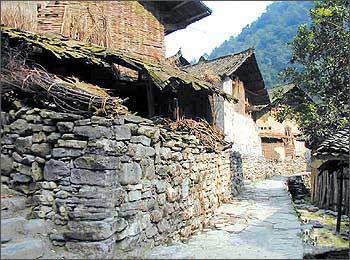 德夯村位于峡谷深处,有八十余户苗家,紧紧相依于翠谷中;统一是鳞鳞灰瓦木屋,木屋间穿插着青一色的石板路、石板坪石板桥、石板墙,透着和谐、统一的美,整个村寨显得恬适幽静。 村寨四周山势雄奇,绝壁夹天;“夯峡”、“九龙”、“玉泉”三溪在这里相会,如同三根彩带在这里相交结。这里是风景区的中心,一万五千多米长的青石板路从这里一直通向各个景点这里还是一个角度十分好的观景台,人立于此,只要原地转动身子,就可观赏到东西南北全方位的各个景点,那含情脉脉的“相依岩”、昂首奋蹄的“驷马峰”、惟妙惟肖的“孔雀开屏”五彩缤纷的“彩云壁”和“画屏峰”……尽在眼中无不景象万千,令人目不瑕接。诗人石元机赞曰: 德夯冲溪水粼粼,千里碧波下洞庭。 翠峰峭壁玉龙飞,重峦叠嶂高入云。 单村百门对山开,日照窗前闺中明。 苗家素室胜绣户,男耕女织人端勤。 |