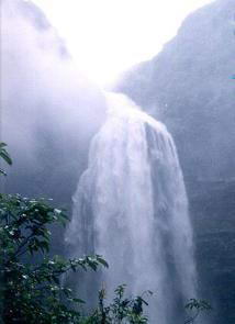 瀑布高216m,是全国最高的瀑布之一。瀑水是从山顶一半圆形岩石上飞泻下来,丰水时期,滚滚流水从悬崖上落入深潭,犹如九龙翻波,吞云吐雾,声若巨雷,震撼山谷,气势磅礴,极为壮观;枯水期流水飘下悬崖,时而如轻纱拂面,时而似珠帘悬挂,宛如白纱荡涤绿潭,荡起层层涟漪,婀娜多姿,温柔秀雅,是德夯风景区内一大绝景。 |