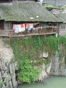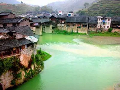 民宅多为吊脚木楼,依山傍水而建,临河者倒影澄潭如水中街市,依山者雄峙高崖似空中楼阁。两条河洁净透亮,其中小河尤为美丽,青山夹岸,绿水长流,河畔蓼红芷白,桂馥兰芳,素有“香溪”之称。其水尽来自溶洞,距街三里之内,就有鱿鱼洞、犀牛洞、王家洞、向家洞几股洞泉和一个叫“鸡屎潭”的温泉。 “鸡屎潭”来有浓重的硫磺味,水温如沸,除污力极强,根本不需肥皂便能将汗渍洗得干干净净,并能医治疮疥,维护皮肤健康。河中多鱿鱼,肉嫩且肥,立冬前尽逆水潜入溶洞起冬,立夏前两三天则成群结队随夏汛而出,乡人在洞口安上网壕,只需“守株待兔”,便能得到丰盛的收获。在20世纪70年代以前,有时每天可得几百斤。 小河滩多流急,是漂流的极佳去处。