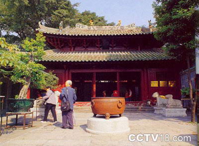 五仙观位于越秀区惠福西路,南汉唐时为府尹祭祀五仙(五谷)的谷神祠,南宋始具观之规模,建于药洲旁,又称奉真观。明洪武十年(1377)布政使赵嗣坚将观迁至坡山处。明、清时,五仙观宏大壮丽,殿堂十多处。今五仙观受自然和人为损坏,观址被占,已缩至深巷之内,建筑仅存仪门、仙迹池、后殿和岭南第一楼。 相传周夷王时,有五位仙人骑着口含谷穗的五头羊飞临广州,把谷穗赠给广州人,祝愿广州永无饥荒,言毕仙人腾空而去,羊化为石,故广州又叫羊城、穗城。人们为了纪念五位仙人,建造了五仙观,塑五仙骑羊像,奉祀观内。 沿深巷拾阶而上便到仪门,石门额刻有“五仙古观”4个大字,为清同治十年(1871)两广总督瑞麟所书。仪门之东一小学内有环砌砖栏之池,池内有块纵横约4米的天然红砂岩石,即“穗石洞天”之“穗石”。石面有一凹处,形似大足印。池内石刻“仙人姆迹”4字。印下有一泉眼,名为佗泉,为广州古城内仅存两泉之一,故印内一泓清水,终年不竭。池连浓荫覆盖,清风徐来。 过仪门穿中殿遗址,便到后殿。后殿是明代宫殿式建筑,殿深10米,宽12米,高5米,为绿琉璃瓦重檐歇山顶,正桁上刻有“大明嘉靖十六年十一月拾贰”等字。内檐施6铺作3杪斗拱玲珑精巧,四壁作间隔用,原为方格门窖,灵巧通透,富具岭南特色,这是广州现存最完整的明代建筑。 殿后坡山之顶有座“岭南第一楼”。明洪武七年(1374),行省参知政事汪广东省洋始建,现建筑是明万历年间重建。该楼通高17米,分上下两层,下层楼基以红砂岩砌筑成一高大方台,台宽14米,深12米,高7米,中间为拱券洞门,前后贯通:上层为本面开放式木结构,呈长方形,面宽11.8米,进深9.7米,13架,4柱,柱金础石,简洁浑厚,重檐歇山顶,正脊饰宝珠鳌鱼。桁梁刻着“乾隆五十三年重建”等字。楼上悬铜钟一口,钟高3米,径2米,重万斤,为广东现存最大的古代铜钟,钟体铸铭篆文“大明国兴武十一年岁次戊午圻孟春十八日辛卯广东等处承宣布政使司铸造”。钟口之下,正对楼基中心方形大井口,与券形洞六相通,形成一巨大“共鸣器”,钟鸣远播,十里相闻。传说因灾方击钟,故有“禁钟”之称。