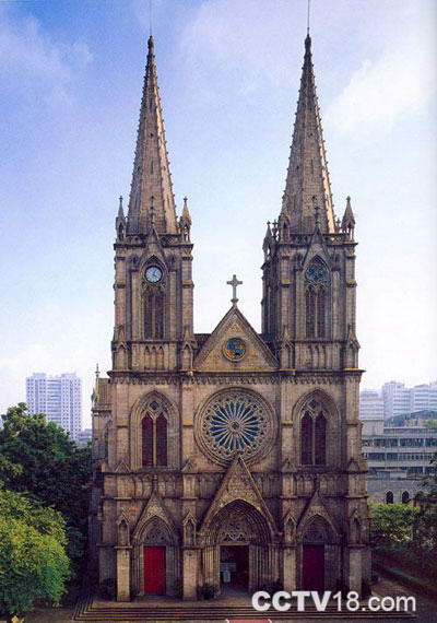 圣心大教堂坐落于广州市区中心的一德路,是天主教广州教区最宏伟、最具有特色的一间大教堂。该教堂是远东区惟一最大的石结构天主教建筑,也是全球四大全石结构哥特式教堂建筑之一。教堂建于1863年,落成于1888年,历时25年始建成,至今有130多年的历史。由于教堂的全部墙壁和柱子都是用花岗岩石砌造,所以又称之为“石室”或“石室耶稣圣心堂”、“石室天主教堂”,是全国重点文物保护单位。 教堂建筑总面积为2754平方米,东西宽35米,南北长78.69米,由地面到塔尖高58.5米。教堂属“哥特”式建筑,可与闻名世界的法国巴黎圣母院相媲美。1863年6月28日是天主教圣心瞻礼日,正式举行奠基典礼,并命名为圣心大教堂。
