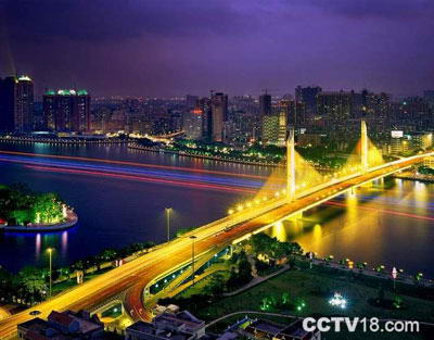 滨江霓裳指的是位于海珠岛北岸、珠江南滨的滨江路沿线风光,滨江路是规划中环岛路的一段,整洁流畅的滨江路于蜿蜒的珠江水一起延伸,路两旁的百年老榕树婆娑成荫,倒映在江面上,形成独特的南国风光。滨江东临江高尚住宅楼群以现代化设计点缀了美丽的珠江。 彩虹飞渡般的跨江大桥点缀了美丽的珠江,海印大桥是海珠区十二座跨江大桥之一,连接着东山区,北达东湖,南抵东晓路。雄伟的斜拉式钢索大桥与桥南岸具有亚热带风光特色的海印公园相呼应,形成珠江上一道美丽的风景。