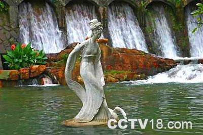 天湖旅游风景区位于著名的从化温泉省级旅游度假区内,天湖库容1千万立方米,最深处40余米,湖水清澈晶莹,湖畔群山环抱。林中古木参天,处处层林叠翠,是远足探幽避暑的胜地。天湖的“百丈飞瀑”是华南地区最大的自然瀑布,六十年代以来许多中外名人都曾惊叹赞美天湖瀑布的恢宏气势,留下不少佳话:朱德总司令当年亲笔题写“山舞银蛇”四个大字至今仍刻在瀑布旁的峭壁上;文学大师郭沫若先生曾欣然赋诗:“百丈叠三瀑,一溪奏万笳、泉飞崖罩面水激石生花。”柬埔寨西哈努克亲王到此也流连忘返,满怀兴致坚持要在瀑布下的岩石上与陪同人员共进午餐。