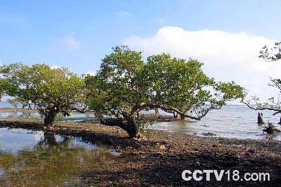 特呈岛是湛江港内的一个小岛,位于湛江市区东南2.8公里的港湾内。特呈岛的红树林最有特色,沿岛五百多亩的红树林,连绵成片,生机盎然(注:红树林是生长在热带和亚热带的海洋木本植物群落,具有植物界罕见“胎生”繁殖方式。)特呈岛水边堆积着许多大块的褐色沉淀物,那是以前火山喷发留下来的。 |