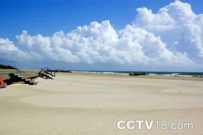 (银湾揽胜)白沙湾,位于海安之东,北倚白沙村,面向大海,与海南岛隔海相望,两旁有排尾角与红坎角为屏障,呈半月形。该湾浪细水清,滩涂平缓而宽广,上面铺满洁净细软的白沙。 海岸线长3千多米,岸边长堤如练,岸上有青葱的椰林。海湾东段,古负盛名的“白沙钓台”、“虎头石”等胜迹。汤显祖被谪徐闻时,曾游该湾,写下诗句:“东望何须万里沙,南溟初此泛灵槎;不堪衣带飞寒色,蹴浪兼天吐石花”。现建有全省闻名的天然海水浴场和白沙湾度假村。 |