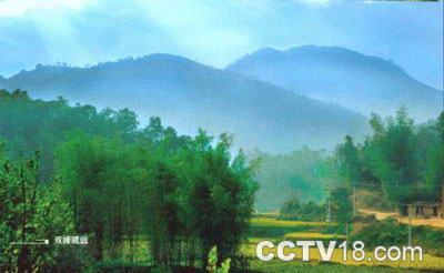 双峰嶂东拥形似仙人端坐的仙人嶂,西抱酷像一尊巨大睡美人塑像、头上高挽发髻、斜躺丰腴身躯的婆髻嶂,绵延数十公里。景区面积100多平方公里,区内山峦起伏,山风轰鸣,松涛翻涌,峰奇石怪。山塘水库错落山腰,山上石垌穿幽,山脚流溪缠绕;涧有清泉从山石中涌出,悬崖滴落。三峰鼎足相望,平均海拔320米以上。盛夏进山,清凉如初春。自然景点众多。