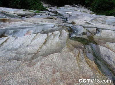 半月岩,位于北界镇山口村。高耸的山峰,峭壁般的岩壑,与陡峭的山溪,峥嵘的异石,构成一幅美妙的自然图画。为信 宜八景之一:半月烟雨。 半月岩的主体是一块弧形巨石,长13米,高3米,成弧状,形似半边月亮,故名。岩壁上镌“半月岩”大篆字;下方镌对联:“鲲像选岩,刊圆穷恍入六峰海;蟾光临瀑,看倒景还呼半月岩。”均篆体阴刻。下署:“甲戍里人林韵宫命名并题”。 岩石底部为一弧形石室,阴敞阴亮,可容数十人。内有石床一张曰“仙人床”,长207厘米,宽127厘米,厚18厘米。床沿篆刻铭文:“端室仙座,韵宫移此。招贾生以共坐,非宋武所能毁。” 半月岩左侧,矗立着两块岩石,一似振翅欲飞的鹭鸟;一则圆浑平整,大可稳坐其东侧上以观鱼垂钓。故岩壁上分别篆刻着“振鹭台”和“钓鱼台”。此外,还有“中央台”、“东岩”等十多处石刻。 东侧是山口瀑布,晴天,潺潺山泉欢奔笑逐,弹起千颗银珠,雨时,瀑布倾泻,卷起漫天烟雨,若遇春雨乍晴,则掩绿浮丹,水光山色,分外迷人。