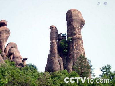 鸟寨位于省级风景名胜区金鸡岭旁,为丹霞地貌,但地形较为平坦,并有一定面积的水体,四周为悬崖峭壁,围合成一个完整、独立、幽静的空间,有许多鸟儿在此栖息,是鸟的天堂,甚至其山石的形态,也如群鸟相聚,分不清孰真孰假,令人叫绝。 铁锣坝位于金鸡岭东南8公里处,亦为丹霞地貌,南站为入坝口,东西北方为悬崖,南有姐妹石,出露于崇山峻岭之中,四周悬崖峭壁,无路可攀,从远处望去,高大石柱昂首挺立,数根石柱环绕着中间一根较大的石柱,貌似一朵盛开莲花,又形同姐妹久别相逢,拥抱在一起,故称姐妹石,姐妹石附近青松屹立,郁郁葱葱。 |