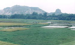 石角丹霞地貌自然景区,位于广东省清远市最南端,毗邻广州市花都区和佛山三水市,隶属石角镇的民安、南村、马头、小河等村委会,距广州市60公里。丹霞地貌面积6.51平方公里,属海拔低,低丘类型的丹霞地貌。 石角丹霞地貌分为六房水库景区、马头石景区和神石景区。三大景区之一的马头石景又分成人头石、公主岩、马头石、晒布岩、九厅十八井和燕子岩等6个景点。其中马头石为丹霞地貌最高峰,雄伟壮观。从岐背岭附近的北江大堤看,它似一匹匍的骏马。景区内除了拥有雄险奇秀的丹崖赤壁外,还加上绿树葱葱、流水行云、构成一幅幅青山、绿水、红岩、雄险厅秀幽的画卷,令人陶醉,流连忘返。是极具有投资开发价值的旅游景点。 |