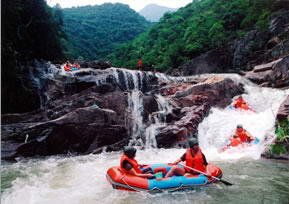 黄腾峡生态游于清远市清城区东城街黄腾峡峡谷,距市区4.5公里,风景区内将建有漂流、大型水上乐园、峡谷休闲公园、高级商务会所、星级酒店和度假别墅等项目。黄腾峡漂流于2004年5月1日对外试营业。该漂流水道全长4公里,分天然探险漂和观景勇士漂;探险漂1.5公里,连接观景漂2.5公里。总落差168米,最高落差12米,最长落差近百米,大小落差有130多个。 漂流河道经河道专家精心设计,河道保持其原始风貌,河流水质清澈见底。这里峡谷雄伟、壮观,山峰奇巧、怪石峥嵘、花木繁茂,常年烟雨弥漫。人在水中漂,如在画中游,既可享受澎湃刺激的漂流又能在自然生态的环境中享受一流水质的无穷魅力,漂过一山又一山,赏尽一景又一景,令游人留连忘返。 |