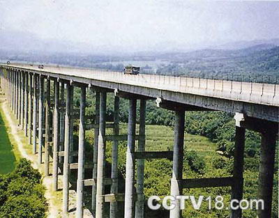 杜步大桥座落在县城以南20多公里的新107国道杜步乡路段,它横跨两座山峰,长832米,由52根圆柱撑托而起,每根柱墩地面高70多米,打入地下还有30多米,是我国最高的墩柱式公路高架桥,也是亚洲最高公路旱桥。 杜步大桥与周围柔美的田园山色相映衬,更显苍劲雄壮,是值得游客停车驻足一看的人造彩虹。 |
