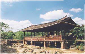 泰新桥位于平凤镇平岗管理区新村。始建于明代,据《封川县志》载:明嘉靖十二年(1534年)邑人陈时用等募缘修建,长十余丈、阔一丈,上覆以亭。清嘉庆年间(1812年)重建。现桥屋梁底仍有重建时的题记:“大清嘉庆十六年岁次辛未十一月十七日王辰日癸卯时东西社众缘信等重建”。该桥为梁柱式廊桥。桥长10.89米,阔3.4米,桥上有桥屋(桥亭)涵盖全桥。桥屋面阔三间。歇 山式屋顶,屋脊饰灰塑卷草吻,脊身看面灰塑浮雕卷草花纹。盖瓦方式为蝴蝶瓦。桥墩为方形短石柱,共4列16根,每列相对于桥屋的各缝梁架,柱顶有媚梁,梁上铺桥板。柱可以穿仿相连,各柱列中穿仿与媚梁之间置蜀柱承接。 石柱脚以较平整河床石垫承,不施斧凿。梁架为抬梁式,结构为“八架椽屋前后乳袱四柱”,乳袱外接挑梁承托檐擦出檐,柱头隐刻圆护斗直接承托擦子,次间 梁架比明间梁架增高。以使屋檐形成缓和的曲线向两边生成。梁架间以驼峰斗拱承托,驼峰上刻如意纹,明间两侧驼峰上雕刻有“鱼跃龙门”、“双狮戏球”、“丹凤朝阳”、“膜磷献瑞”和卷云纹等图案,并铺金描彩,平梁正中置驼峰,驼峰亦隐刻护斗承一斗三升拱,上承三角形枕木和脊搏及顺脊串。题记写在顺脊串下。脊搏截面为圆形,顺脊串砍作腰鼓形,其两端雕刻花纹。 泰新桥建筑精巧,造型古朴。桥下部分保持了我国唐宋时期木结构梁柱或桥梁的古制,堪称南粤古桥中之奇葩。1985年被定为县级文物保护单位;1989广东省人民政府公布为省级文物保护单位,1987年冬省文物管理委员会、封开县人民政府和平凤镇府、新村村民四方集资,依旧貌将该桥修耷一新。 |