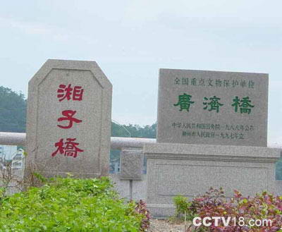 “湘桥春涨”描绘在暮春三月桃花水汛,韩江水涨,河面增阔,十八梭船的涨落随潮水浮沉升降与桥东西墩连成一线,恰似长龙卧波活现。展望江面,但见韩水上游轻舟点点随波飞驰,中游东岸笔峰摇翠,下游凤凰的桃花盛开,景色迷人。这一番景致在清乾隆进士郑兰枝盛传海内外的“潮州八景”诗中,描绘得绝妙:“湘江春晓水迢迢,十八梭船锁画桥。激石雪飞梁上冒,惊涛声彻海门潮。鸦洲涨起翻桃浪,鳄渚烟深濯柳条。一带长虹三月好,浮槎几拟到云霄。” 随着历史的变迁,广济桥几经修筑。1958年对全桥进行加固维修,并拆除十八梭船,改建为三孔钢桁架及两处高桩承台式桥梁。1976年又一次进行扩建成现状。1988年3月,广济桥被国务院公布为全国重点文物保护单位。现在,潮州市政府正计划恢复广济桥原先风貌,努力把潮州建设成为中国优秀旅游城市! |