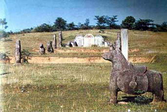 王大宝是潮州八贤之一,宋建炎二年(1128)廷试第二名(榜眼),官至礼部尚书。王大宝墓位于潮安县归湖镇神前村的神前山,其地俗称沉江月,占地约4亩,筑于宋乾道六年(1170)。墓地向西,墓碑高约2.3米,楷书阴刻“宋礼部尚书大宝王公墓”。墓前排列着南宋大型石雕群,计文武翁仲、石狮、石羊、石笋、石望柱、石马等14件,石雕线条粗扩,工艺简练古朴,反映了南宋的雕刻艺术水平和风格,是广东省现存为数不多的大型宋代石雕。 1989年王大宝墓被列为广东省重点文物保护单位。 |