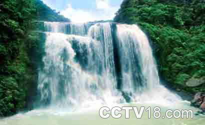 京溪悬川即黄满磜瀑布,位于揭西京溪园镇粗坑河上段,河水至此奔流直泻形成宽八十多米、落差近百米的天然瀑布。水声轰隆,隔山可闻,瀑面似银帘悬天,瀑下潭水碧清,潭边的海龟石、海龙石等景观栩栩如生。周围古藤相绕、翠竹遮天、绿水青山,给你大自然的享受,是森林生态旅游的好去处。