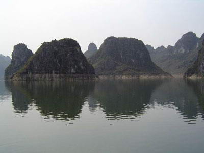 游船在轻轻荡过,我们在细细品位。大龙湖中的山并不浓妆艳抹,过于张扬,更像天生丽质的女性,娴静地在水一方。大龙湖的水就像美人的眼波,那么盈盈复脉脉,那么神幻莫测。请看船边的水,一会儿幽幽的,显得那么深邃;一会亮亮的,显得那么明澈;一会儿又绿绿的,显得那么生机盎然。大龙湖的水不仅能激发游客的诗情景趣,还承担这灌溉上林、宾阳两县近30万亩土地的重任,真正做到旅游和务农两不误。