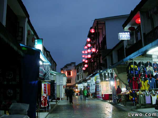 西街上的饭店、餐馆、网吧、酒吧等等都是中西合璧的,几乎所有的招牌都是中英文对照,从老板到服务员到街边的小摊大妈都能说一口流利的英语,这里已经没有地域的差异了,闲散、悠闲的生活,让很多到这里旅游的游客久久不想离去。“偷得浮生几日闲”,也许在这里才能感受到什么是生活。 中外游人川流不息,或购物,或观赏。街边餐馆的菜谱既有中式,也有西式。许多外国人围坐在此喝啤酒,品佳肴,兴致来时还要亲自下厨掌勺。这使西街成了名副其实的洋人街,它给阳朔小城增添了一道亮丽的风景。游人在这里可以尽情享受到小镇幽静的环境和独具情韵的休闲时光,体会浪漫的情调和异国的风情。 逛西街也是非常方便的,因为街的东头就是漓江边的游船码头,游人刚游完漓江,一下游船便直接进入西街了。 |
