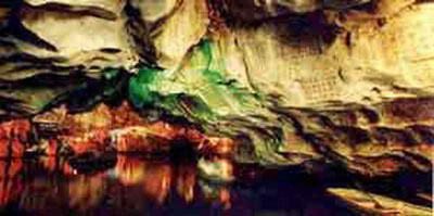后洞形似喇叭口,有如巨龙张嘴大吼。洞口斜向天空,高约40米,宽30米,崖壁上缀满石乳、石幔、瀑布飞帘。洞后古木参天,原始森林郁郁葱葱,峡谷长约1000米,泉水汩汩,幽雅清新,仿若世外桃源。 |