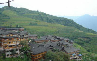 平安寨,位于龙脊梯田的最顶峰,海拔1200多米,人口大约800多人,170多户。平安寨来说最高的梯田是800多米,最低的梯田350米。春如链如带,夏滚道道绿波,秋叠层层金塔,冬似群龙戏水;梯田小如螺,大似塔.这里的居民全都是壮族。中外驰名的龙脊梯田改变了这座小小的山寨的生活方式。山寨很平静,但却一点儿也不寂寞。每天都有很多的中外游客到这里旅游、度假、休闲、观光、摄影。