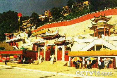 二楼供奉着关帝神像,左侧有一池清水,内有一头万年长寿石龟,大龟背上驮着一大型石刻"总府题名碑"。游客到此拿钱币"投石龟求好运"。龟池后山壁上有一大型浮雕"五龙喷水壁"。