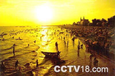 北海银滩旅游度假区位于北海市南部海滨,距北海市区8公里。银滩西起侨港镇渔港,东至大冠沙,由西区、东区和海域沙滩区组成,东西绵延约24公里,海滩宽度在30--3000米之间,陆地面积12平方公里,总面积约38平方公里。沙滩均由高品位的石英砂堆积而成,在阳光的照射下,洁白、细腻的沙滩会泛出银光,故称银滩,北海银滩以其“滩长平、沙细白、水温净、浪柔软、无鲨鱼”的特点,被誉为“中国第一滩”。