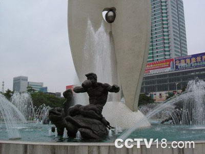1986年,根据规划在广场的北侧建成“南珠魂”雕塑,雕塑建设方案由我国著名雕塑家叶毓山教授设计,整座雕塑占地600平方米,由水池、雕群、碑体三部分组成。水池圆形,直径13.8米,可蓄水150平方米,象征大海;水池中央耸立高达12米的珍珠贝壳造型碑体,立体三页贝壳中衔一颗直径为1米的不锈钢球,象征熠熠发光的宝珠孕育于珠贝中;水池内环绕主碑体周围有三组造型独特的雕塑群,分别是骑承海鱼的珠女、骑承海龟的青年渔民和骑承海马的渔翁,每组雕像高达5米,用合金铜铸造。1993年在水池内增设灯光及喷泉设施,每当夜幕降临,碑体、雕群、灯光、喷泉相辉交映,景象十分宏伟瑰丽。