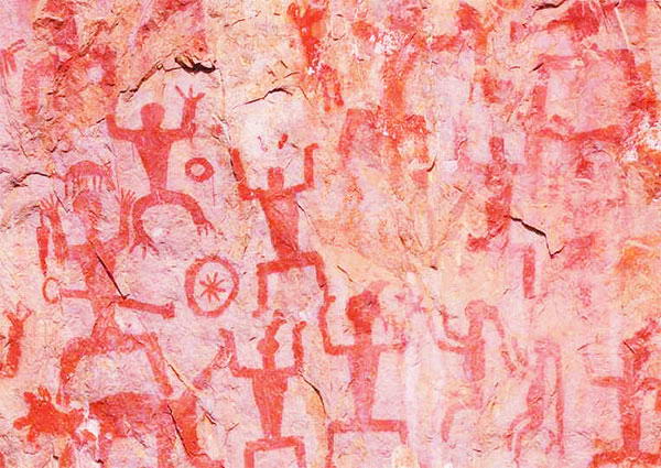 花山整座峭崖画满了各种呈土红色的人像和物像,人像中有正面和侧面两种姿势。正面人像两手高举、两脚叉开成立马式。侧面人像两手平伸、两腿微蹲成跳跃式,既像练兵习武,又如狂舞欢歌。物像中有形似马似狗的,有像看似藤牌、锣鼓、太阳的。画像中的人物线条粗犷,图画栩栩如生。正画人像中有佩刀剑的,有戴桂冠的,这些人物是头人或指挥者。其周围都有一群“小人物”朝着他,组成了一幅幅神情各异的画面。有关资料记载,花山崖壁画宽220米,高45米,人物图像1800多个,绘画年代在东汉以前,距今已有2000年以上的历史了,观瞻者不无赞叹:神奇啊,花山! 壮族先民绘制这个大型的崖壁画用意是什幺?一些专家学者经过实地考察后,有的说是祝捷庆功,有的说是欢庆丰收,还有的说是操练或出猎什么的,说法不一。总之,目前仍是个迷。 花山崖壁画不愧是壮族的艺朮瑰宝。它那古朴粗犷的笔法和风格,那栩栩如生呼之欲出的人物神态,体现了古代壮族人民的审美情趣和高超的艺朮水准。有关学者专家公认:左江花山崖壁画就其分布之广,作画地点之陡峭,画面之雄伟壮观,作画条件之艰险,都是国内外所罕见的,在世界美朮史上应享有崇高的地位。 现在花山崖壁画这一壮族艺朮瑰宝已蜚声国内外。 明江,带着远古的情致,从上游滚滚而来,绕过荷城,迂回着静静地向西流去,在龙州上金汇入左江。富有灵性的明江河水,滋润着两岸青山,孕育着古老的灿烂文化。勤劳的祖先用智慧和勇气在明江狭岸陡峭的悬岩上留下多处岩壁画。花山壁画是这古老文化中一颗熠熠闪亮的明珠。 巍巍花山,屹立在祖国南疆边陲宁明县境内的明江下游北岸边,大自然赐给了她独特的身姿:三百多米的山峰从河边拔起,顶天立地,临河立面仿佛被一把神剑从头削到脚,形成一块巨大的绝壁。壮族先民在这块绝壁上描绘一千三百八十个大小不一,形态各异的图像,组成一幅长两百多米,高四十多米的壁画。隔河而望,那密密麻麻的朱红色线条组成的粗犷古朴的图像,仿佛是一团团燃烧的火,在银灰色的石屏上跳动、奔腾。整个壁画气势恢宏,神奇诡秘,蔚为壮观,与四周青山绿树和澄碧的明江河水交相辉映,叫人叹为观止。 一直令中外许多考古专家不解的是,那貌似普通朱红色的线条为何经历两千多年时间还依然色彩如故?而在那鸟儿都没有地方驻足的绝壁上,古人如何上去作画,且不留下刀削斧凿的痕迹?为解开这些谜团,至今还陆续有专家学者前来考察。中外许多游人也纷纷慕名而来,一赌花山风采。 花山壁画被专家们誉为我国壁画中的佼佼者。国家把她列为国家级风景名胜区。近年来,宁明县人民政府斥重资,把神奇的花山,风光秀丽的明江沿岸和保持大自然原始风貌的陇瑞自然保护区连成一线,开辟花山旅游风景区。踏进花山这块神奇的土地,观赏古老的壁画,留连风光明媚的画山秀水,人们不禁思绪万千:壮族的祖先用智慧和勇气,创造灿烂的花山文化,留下宝贵的遗产。然而,祖祖辈辈的美好愿望,是在新中国成立之后才得以实现。改革开放的春风,唤起了我们的国家、民族的崛起、繁荣和变革。古老的花山不再沉默了!花山脚下,松涛阵阵,稻浪翻滚,瓜果满枝;明江两岸,机声隆隆,蔗海无边,八角飘香。花山儿女正以昂扬的斗志,用勤劳和智慧去描绘新的画卷。 交通指南: 从距南宁160公里的宁明县城,乘三轮车,1元左右,20分钟即可到达驮龙,然后,乘机动船从驮龙桥头上船前往花山壁画,私人船开价80元来回,可以还价到50-60元左右,沿江而下,一般2小时可到达。 |