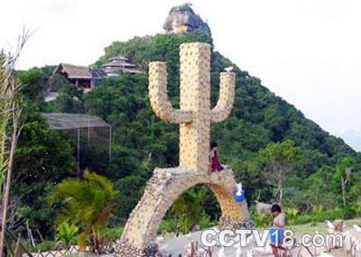 在东峰上俯瞰岭下,人们会情不自禁的吟出“一览众山小”的诗句,而且,可以看到岭下万泉河与白石岭交相辉映,山临水,水绕山,让人看后不禁怦然心动。始于清代康熙年间的(乐会县志),有一段关于白石岭的记载:“白石岭地脉发自五指山,诸峰罗列,星家谓有五景聚集,周围环施数十里。其中峰有通珑石,摩空插汉,层层洞谷。东峰为岭,岭有石状如龙首。南峰称为狮石,形似狮子。西峰为沙牛石,形像牛背,乡人名以形相呼。”这段话交代了白石峰源于五指山,接着形象生动地描绘白石岭巍峨挺拔,群峰竞秀,山峦纵横层迭,石洞天工奇巧的奇特景观。