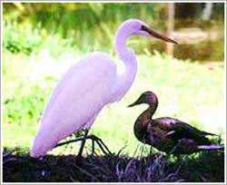 洪斗坡白鹭乐园位于屯城镇北二公里的三发乡洪斗坡村,是村民自觉保护鸟类形成的一处独特生态景观,被誉为“白鹭乐园”。 白鹭给这里的村镇田野平添了一层扑朔迷离的色彩。清晨,每当它们腾空而起,这里的田野和村庄上空便出现了千万朵白云,慢悠悠地飘向远方,消失在天际。夕阳西沉飞往各地觅食的白鹭便成群结队从四面八方回这里的树林、竹丛归巢地。只见三个五个一群,十个八个一队,在村子上空盘旋,悠闲自得;有时雌雄打趣,上下翻飞;有时从高空直冲下来,然后又飞上去。它们这些归林的游戏,持续大约半个小时后,树顶、竹林上便好像点缀着团团雪花,恰如唐人诗句中的“忽如一夜春风来,千树万树梨花开”的情景,异常壮观。 洪斗坡村仅有十几户人家,人口不足百人。每当春暖花开时节,一群群白鹭鸟便从遥远的地方迁栖到这里,为洪斗坡村带来活力与生动。活泼可爱的白鹭或者在绿色的田野上空飞翔嬉戏,或者飞落在翠绿的树冠上啼鸣,远远看去,好像盛开在树上的朵朵白花。进入村庄,绿树环抱,景色清幽,白鹭鸟栖息在树丫之间。有的嬉戏对鸣,有的梳理羽毛,有的哺喂雏鸟,安祥自若,情景动人,活脱脱一幅“仙鹭呈祥”的百寿图。 白鹭鸟最早在上世纪六十年代来洪斗坡村落户,由于村里男女老少皆视白鹭为吉祥之鸟,订下了“爱鸟护鸟,人人有责”的村规民约,从不伤害一只鸟,从未掏过一个鸟窝,为白鹭创造了安全舒适的栖息环境,村庄成了鸟的乐园。于是白鹭的队伍越来越壮大,渐渐达千只以上。 白鹭鸟以小鱼、小虾、蚂蚁和蚂蝗等为食物质,也吃一些森林中的害虫,是一种益鸟。洪斗坡村人在村庄四周的荒坡上种植了大量果树,客观上也为白鹭鸟提供了更好的生息繁衍条件。 目前洪斗村白鹭乐园已经成为海南岛上与儋州屋基村、澄迈县加连潭齐名的白鹭栖息生态风景区,吸引着越来越多的游人前来与白鹭同乐。 |