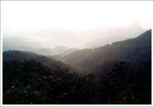 古森林中,木材种类达六百多种,列为国家重点保护和严禁采伐的珍稀树种就有二十七种之多。保护区内珍稀野生动物很多,最珍贵的是世界上四大类人猿之一的黑冠长臂猿,还有云豹、黑熊、水鹿、穿山甲、巨松鼠、椰子猫、灵猫、果子狸、飞鼠、孔雀雉、白鹂鸡、山鸡、啄木鸟、猫头鹰、飞鹰、山鹧鸪、蟒蛇、巨晰等六十多种,均属珍稀动物之列。数不清的热带花卉和寄生草,环着树端和藤间丛生,争妍斗艳,形成千姿百态,花枝招展的空中花园。其间的不少局部,由于多种热带花果相依相扶,互相点缀,宛如经过人工精心布设的盆景,给这空中花园增添了不少姿色。林区的人们顺口都叫这为空中花园。在高大乔木聚生的林片里,人们还常常见到一棵参天的乔木都有板状根,借以支撑它那硕大的躯干婆娑的枝叶。有不少附生植物不仅生附在这些乔木的树干树枝上,还十分巧妙地附生在乔木的树叶上。每逢它们开花季节,半空繁花似锦,芬芳远散,景色奇特而美丽。 |