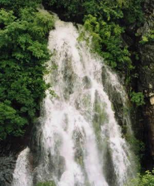 再往上攀树爬藤而上就可到达第二级,称之为“妙药池”,据说这级瀑布的井形池中,随着飞瀑的冲击,不时腾滚出一种红色的花果,是包治百病的“灵丹妙药”故而得名;最高的一级称为“金龙吐珠”,因其拥有一股清泉从山顶飘逸而下,激起的水雾在高空中在阳光反射下,显现五彩缤纷。两边的两股支流,煞象银白的龙牙从血口伸出;再加上两壁生长翠竹枯木,很似龙爪与龙须故而得名。原海南省委书记,诗人许士杰曾观看百花瀑布赋诗:“百花潭水泻千寻,夏起惊雷冬奏琴。翁郁层峦垂素娟,飞珠涤垢韵陶心。”热情地赞颂百花瀑布的奇、秀、雄、美的景观。 |