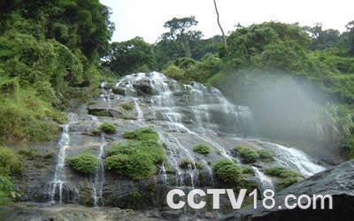 百花岭瀑布是石百花岭风景区的特级景观,是游客观赏的主要景点。落差高度达300米,巨瀑分三级跌宕泻下,其声喧哗,其色雪白,其势磅礴,蔚为壮观。站在观瀑亭中,昂首仰望,那瀑布如哈达从两颗古树之间贴绝崖峭壁飞泻而下,随风飘来的水花雾气,轻轻的吻着游客的手脸。往上攀树爬藤而上就达到第二级,有“妙药池”,据说这级瀑布的井型池中,随着飞瀑的冲击,不是腾滚出一种红色的花果,是包治百病的灵丹妙药,故而得名。最高的一级称为“金龙吐珠”,因其有一股清泉从山顶飘逸而下,激起的水雾在阳光的反射下,呈现五彩缤纷。两边的两股支流,像银白龙牙从血口伸出;再加上两壁生长的翠竹枯木,似龙爪与龙须,古人们美其名“金龙吐珠”。 |