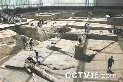 经历三千年木人像容颜依旧 从出土的文物看,金沙遗址毫无疑义是具有特殊身份的人留下的遗址,而且这些人肯定是当时成都平原的最高统治者之一。 金沙遗址出土的文物绝大部分是礼器,玉器、石器多为半成品,因此,该遗址是祭祀遗址还是作坊遗址目前尚难确定。 专家称,金沙遗址再次证明了成都平原在商周时期便有了非常辉煌的青铜文明。出土的玉戈、玉瑗表明,金沙文化不是孤立的,它与黄河流域文化和长江下游的良渚文化有深刻的内在联系,再次证明中华文化是多元一体的。这是位于成都市西郊苏坡乡金沙村的金沙遗址发掘现场。 目前,金沙遗址博物馆已对外开放。 |