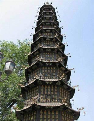 千佛塔位于都江堰市北5公里灵岩山灵岩寺左侧。此塔系唐开元年间(713-741),印度僧人阿世多尊者重建灵岩寺时修建。为石雕堵坡式实心塔,通高3米,底径约7.5米,下设须弥式塔基,上置覆钵形塔身,共13层,下大上小,各层雕满结枷跌坐佛像,故称千佛塔。下三层佛像刻有莲坐项光,以上各层依次缩小。像高数厘米,精雕细刻,衣纹清晰,神态慈祥,总共约800余尊。塔顶饰莲花瓣两层,上置莲座,置铁铸释迹牟尼佛座像一尊。此像与石雕像风格不同,疑为后配。千佛塔在宋代很有名,诗人范成大有“五桥今日新知路,千佛当年旧缀名”之句。造型奇特,雕琢精细,为蜀中鲜见。 |