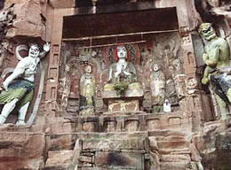 在成都市蒲江县长秋山。长秋山,传说为二十四治中的主簿山治。造像位于山巅太清观附近。现存7龛,有太上老君、女真、力士等像,并且有反映唐玄宗时,丹棱龙鹄山女冠杨正见来长秋山食人形茯苓白日飞升成仙故事的雕刻。据造型推测,大多数属唐代造像。可惜部分造像已被乡民妆彩,破坏了原有风貌。山上其他地方还有多处佛教造像,但规模都小,仅一两龛。 |