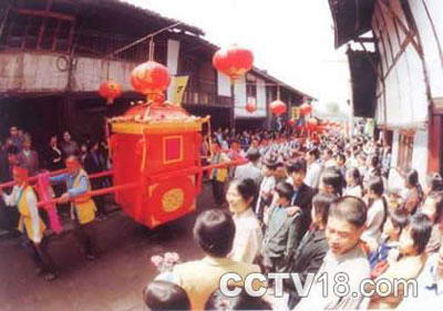喜庆热闹的娶亲队伍 仙市不仅以山水秀丽闻名,且还以名人辈出而著称。曾以参赞名义出使英,法,意,比等国被誉为“川报第一人”的宋育仁和北大教授王楠生就启蒙于此。清末辞官隐居的大儒名仕罗金声,宋时湛便长期隐读仙女峪,这里还是当年威震成渝等地传奇武林高手“罗三爷”的裔胞之地,除奸铲霸,誉满乡里的“李蓝义军”部将头领“李千斤”和民国少将蓝尉,也是古镇孕育出的著名人物。