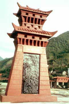 江堰碑又名汉源碑,位于绵江堰(今官宋硼堰)口,是东汉熹平五年(176)绵竹县令率吏民在绵江堰修河治水而留下的治水记事碑。碑高约1.6米,宽0.7米,为文献珍品,前人有拓片碑文传世,全文计423字,清晰完好者259字,虽有所缺,但文义明显。运笔之处,神态犹存,此不独治水文献,亦书法珍品。此碑作者不详,据有关文献资料考证,极可能为东汉时名满天下,博学多才的蔡邕所书。此碑历史价值极高,曾被收入《天下碑录》、《秦汉篆文考》、《隶释》、李调元《蜀碑记补》等文献,堪称天下奇碑。 |