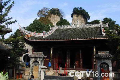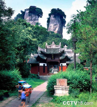 山中古刹---云岩寺,兴建于唐乾符年间(公元874-879年),寺庙临岩负山,气势磅礴,经历了唐、宋、元、明、清的毁葺交替,及佛道相争,最终形成“东禅林、西道观”,佛道文化与古建筑融为一体的格局,是目前国内寺庙建筑中极为特殊的古建筑群。寺内飞天藏(又名星辰车)南宋淳熙八年(公元1180年)建,作工精巧繁复,飞龙盘绕其间,木雕道教人像优美逼真,为目前保存最完整、历史最悠久的纯木结构转轮经藏,是窦圌山文化内涵之精华,八八年公布为全国重点文物。寺后孤耸的三座石峰以铁索相连,索桥始建于唐代,现存铁索为清雍正五年所建,是中国桥梁史上的—大奇观,高50米的索桥,唯“飞仙可渡”,表演者履于云海雾惟中,惊险绝伦,堪称华夏一绝,真可谓“风景这边独好”。