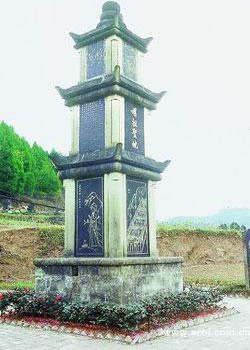 嫘祖陵(墓)位于盐亭县的金鸡镇的青龙山,远在秦汉以前就已建成,是人们思古怀亲追忆祭祀嫘祖的地方。恢复重建的嫘祖陵为八卦形,以山为陵,外露三方,内藏五方。陵墓边长为24.95m,意为二十四节、九五至尊,陵直径60m,高190m,属中华女祖第一陵。1993年,四川省老领导、学者杨超为原墓题写的“嫘祖墓”碑,包含在陵墓正中。陵前碑亭,宽14m,高9m,采用八卦中的坤卦形结构。陵碑高2.8m,宽1.2m,厚0.3m,“嫘祖陵”三个古篆体大字是由新加坡著名华人书法家丘程光先生到盐亭书写的。