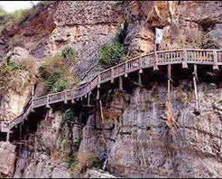 川陕蜀道遗址道一又称阁道,栈阁。在广元市区北45公里朝天镇南北明月峡和清风峡中,濒嘉陵江东岸峭壁上。是古代川陕之间著名蜀道遗迹。历史上许多文人墨客曾有不少描写,以唐李白的《蜀道难》最脍炙人口。栈道开凿始于先秦,《史记》有“栈道千里通于蜀汉”的记载。历代续有修葺。今阁道已废,岩壁上洞孔犹存。洞分上中下三层排列,中层孔洞用作插木桩,上铺木板以作行道,下层作支撑孔眼,上层用以搭篷蔽雨。每个洞孔约30厘米见方,深50厘米左右。远观栈道,宛若凌空廊阁,故又有云阁之称。 |