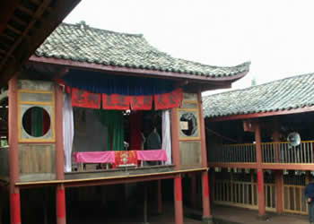 蓬溪五大古镇之一的今文井镇有逾千年的历史,原名文井场,先建老场,老场原属西充(解放后才划归蓬溪县),老场规模较小,只有正街一条,原分为两排,屋檐水逢中均滴入小沟流去。老场有几家大茶馆,一是正街下排文首清舵把子的茶馆,上排傍鸡市街口有王姓大茶馆,还有下排“多芳园”大茶馆、饭菜馆。在关岳庙右下边有一条小街,即原老场场口。另有鸡市巷街很简陋,由鸡市巷侧上石级有老米市坡,为米粮市、鸡鸭猪羊市等,每逢农历一、四、七日当场。正街从关岳庙下建有栅子门一直到鹅项颈处又建一栅子门,由街坊雇有“打更匠”,负责每晨天亮开门,每晚打二更锁门。 由老场鸡市巷街出去,有一大院子,是富商王兴模的家,附近亦有不少的王姓族人。再向前走便是岳家嘴,原建有一石拱桥,附近多为岳姓族人居住,沿一条石板大路走两三里路,便是岳姓的精忠祠(花祠堂),祠堂附近居民都姓岳。 “精忠祠”建于清道光十七年仲冬月初十,祠堂占地约一亩余,配有跑马习武场地。祠堂大门屋顶上垛有花脊。进门便是一戏楼,楼顶也垛有花瓷彩色脊领,皆为细瓷镶成的戏文,中有宫殿式的图案,脊梁两头塑有鳌鱼,头向下,尾朝上,故人们称之为花祠堂。戏楼两旁建有书楼,由戏楼再上几级石梯便是祠堂正殿,殿脊领也和戏楼一样做有花脊。殿正中塑有南宋抗金名将岳飞元帅像,头戴帅盔,全身披挂,五绺青须,庄严肃穆。两旁塑有岳云、张宪(张宪是岳飞收的义子,与岳飞一同被秦桧杀害)二将,岳云手抱一对铜锤,张宪手抱一对铜锏,塑像全是金身。神龛精雕、彩画。祠堂正殿左侧建有房屋,供每年清明会使用,殿右侧建有楼房,与左边相同,外面建有男女厕所,由原族长设有专人管理。