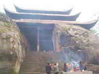 鹫峰寺为古建筑,省级文物保护单位。因倚鹫峰山而得名,因寺内有白塔,又称白塔寺或白塔禅院。在遂宁市蓬溪县城西门外。唐代时为古刹,南宋嘉泰四年(1204年)建白塔,明宣德九年(1434年)邑宰李孚重修寺宇,清代建万年台,形成塔寺结合的古建筑群。 主体建筑为四大殿:天王殿、大雄宝殿、毗卢殿、观音殿。集中了几个时代的建筑特色,为古建筑的精华。观音殿后抵鹫峰山,山上有佛骨塔5座,火葬圆寂后的历代宗师。1983年将天王殿移建在赤城湖清幽岛上。 |
