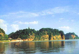 “巨型睡佛”又称“隐型睡佛”,位于乐山城侧的三江(岷江、青衣江、大渡河)汇流处,形态逼真的佛头、佛身、佛足由乌尤山、凌云山和东岩连襟而成,南北直线距离约1300余米,头南足北仰卧在三江之滨。巨型睡佛之“佛头”最为惟妙惟肖,乌尤山为“佛头”,景云亭如“睫毛”,山顶树冠各为“额、鼻、唇、颌”,富有神采;凌云山栖鸾、集凤两峰为“佛胸”,灵宝峰是其“腹和大腿”、就日峰是其“小腿”,东岩南坡则为其“腿”。令人叹为观止的是,举世闻名的乐山大佛正好端坐在“巨型睡佛”腋部的深坳处,似乎正好应验了唐代雕佛者寓意的“心即是佛”和古代民间“圣人出于腋下”之说,形成了“佛中有佛”的奇观。 “巨型睡佛”的形成,究竟是天造地设,还是古人匠心?一时众说纷纭,为“巨型睡佛”增添了更加神秘的色彩。 观赏“巨佛”的最佳位置是在乐山城东乐山港码头一带,在此处望南眺望,但见碧水云天之处,巨大的佛体横空出世,安详自如平卧江面,雄姿健影妙趣天成,给人一种美的享受。 |