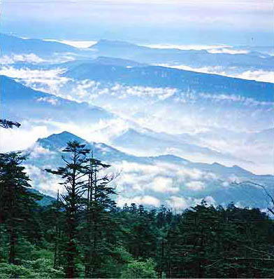 萝峰位于伏虎寺右侧,相距0.5公里,是伏虎山下一座小山峦。草丰竹秀、涧谷环流,古楠耸翠,曲径通幽。 山峦上数百株古松奇枝异态,苍劲挺拔,是峨眉山上少见的松树聚生地。山风吹过,阵阵松涛回荡在山谷之间,颇有“松威”气势。夏季雨后初晴时,烟云从涧谷袅袅升起,或从蓝空缓缓飘过,从密簇簇的松林中望去,变幻百出:有时朵朵白云从伏虎岭飘下,飘到萝峰顶上,飘到游人身旁,缠绕在松树之间,时而飞舞,轻游时而飘向岭下的峨眉平原,显示出峨眉云彩多变的流动美。云从石上起,泉从石下落。 多少游山人,长啸倚山阁。<BR>晓钟有云出,晚钟有云归。<BR>游人应未惯,忽讶云生衣。 明代文学家杨慎《归云阁》诗中所描绘的“云出云归”图,恰似萝峰睛云景象。归云阁即华严寺,已废,遗址距萝峰上行1.25公里。 萝峰晴云是美的,萝峰晴月也是美的,明月升到顶上时,蔚蓝色的天空,映衬着明月,看不出明月是嵌在蓝天上的,还是画在蓝天上的。月光照着松林,伴着松涛声,使人有一种洁净、清凉的快感。 萝峰也是鸟瞰峨眉山平原的最佳所在。登峰远眺,峨眉平原的勃勃生机尽收眼底。当轻云从伏虎岭飘过萝峰,飘下峨眉平原时,游者身在云中,顿有天上人间之感。 萝峰景色素为古人向往留恋。清代康熙年间,太史蒋超仰慕峨眉山,看中萝峰的晴云烟岚,日落月升,便住在萝峰下的罗峰庵里,夜以继日,以病弱之躯,草成一部较完整的《峨眉山之志》,给后人留下一份宝贵的文献。后蒋超也终老峨眉山。 罗峰庵,又名罗峰禅院,是一座雅致的小庙,已于1987年6月重建。翠竹掩映,桢蔽楠日,绝尘脱俗。门联一副:“一尘不染三千界,万法皆空十二因。”庵后为新建的和尚塔林,墓塔林立,庄严肃穆。峨眉山的高僧大师门,都把萝峰视作他们园寂后的归宿圣洁之地。 |