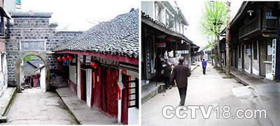 两百多米长的盐店街,其街头街尾各长有一棵黄桷树。街头的黄桷树,在陈家小院内,六七人才能合抱,树龄至少在八九百年间。其辐射的枝桠,掩遮了一大片院坝,又伸向了古院落群的青瓦屋顶,更显古树的威严风范。街尾古驿道旁的那棵黄桷树,约要四五人才能合抱,其树龄不下于四五百年。那青青郁郁的树冠,涂抹着初秋的阳光,活力四放,令观者也倍增精神。 远近闻名的“蓬安财神楼”位于周子古镇下河街街口的嘉陵江边上,始建于唐朝,毁于20世纪60年代的文革期间。2006年,蓬安县人民政府全力打造“嘉陵第一桑梓”旅游品牌,决定恢复周子古镇、财神楼等著名景点,并在尊重历史原貌的基础上,融入现代“元素”,拟把财神楼建成集民俗游乐、特色茶饮、财神朝拜、江滩观景于一体的游客集散中心。 |